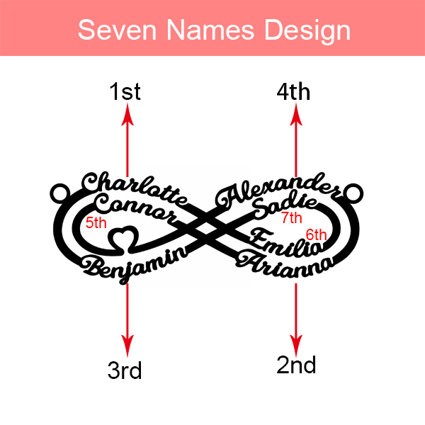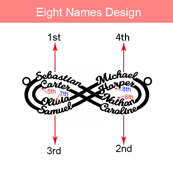This personalized infinity family name necklace is a simple, fashionable and elegant design. Personalize it with multiple names and your favorite colors. The letters will be designed elaborately to give you a meaningful necklace with perfect detail. A good way to treat yourself, or a special gift for your lover, friends, family, or any cherished and loved one.